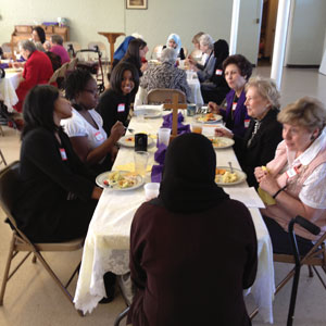 “Whoever you are, wherever you may be on your journey of faith, you are welcome in this place!” is the welcome statement published on the website of the ministry at North Decatur Methodist Church in Decatur, and this is exactly how women of the Ahmadiyya Muslim Community (GA Chapter) felt when they were invited by Bette Prestwood to attend their Lenten Luncheon on February 24th. Although the ties of this friendship are not long, it has grown into one of warmth and mutual respect.