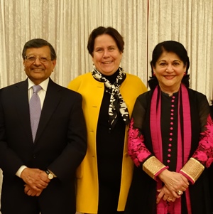 Dr. Jagdish Sheth and his wife Madhu, with Alicia Philipp – President of the Community Foundation of Atlanta, organized and presented an informational dinner program on family philanthropy at the Palace Indian Restaurant in Norcross on November 4, 2014. (Photos: Suzanne Sen)