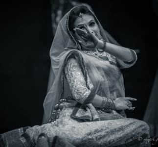 In time, Kathak moved into the courts of the Hindu maharajas and Muslim nawabs and evolved into the Jaipur, Lucknow, and Banaras gharanas or schools, unique in style to those areas. Kathak is a wonderful blend of Hindu and Muslim culture, which also shows in the elegant attire: lehnga-choli for Jaipur gharana and churidar-angrakha for Lucknow gharana.