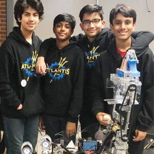 Atman Singh, Ayyan Vellore, Arav Dash, and Sammy Shalim (L to R)—13-year-old eighth-graders from Johns Creek—are the brains behind the robotics team Atlantis 17456 that partnered in a 3-team alliance to win the First Tech Challenge’s Central Georgia League Tournament in January. A total of 26 teams from the North Atlanta region, stretching from Marietta to Lawrenceville, competed in the Challenge. Team Atlantis also received the Collins Aerospace Innovate Award for their “ingenuity and creative robot design solution,” and they placed second in Design and third in Controls. The team hopes to progress through the Georgia State Championship to World Championship, to be held in Houston this year.