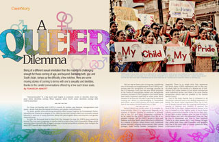 There are many South Asian communities and only a few are represented here. Likewise, there are many expressions of LGBTQ and only a small number are included in this article. What is hoped for from heterosexual readers is understanding, tolerance and empathy. What is extended to LGBTQ readers is a sense of common ground, community and hope. Our challenges, the issues that divide us, don’t go away. But listening to each other brings insight if not agreement. Hopefully this article will be the first of many to explore how South Asian culture and the LGBTQ experience overlap. Please see the online version of this article for more individual stories—stories that span five decades. Our oldest interviewee is almost 70 and our youngest are in their very early 20s. They are from Hindu, Muslim, Sikh and Jain backgrounds. They were born in India, Africa, Pakistan, Bangladesh, and the U.S. They identify as gay, lesbian, transgender and queer.