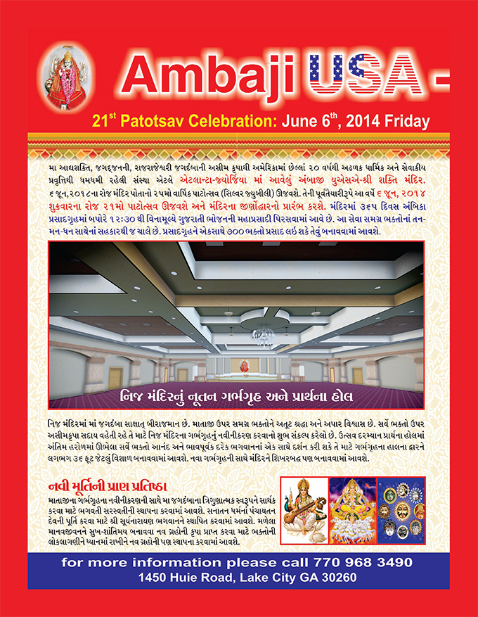 21st Patotsav Celebration by Ambaji USA Shree Shakti Mandir.