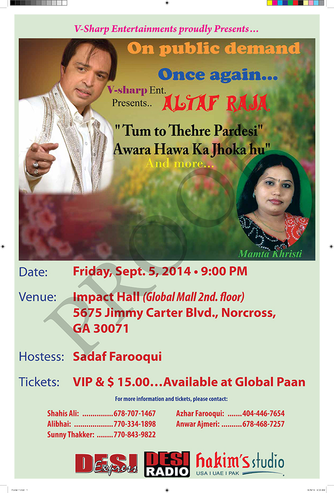 V-Sharp Ent. presents Altaf Raja "Tum to thehre Pardesi" "Awara Hawa ka jhoka hu", and more...