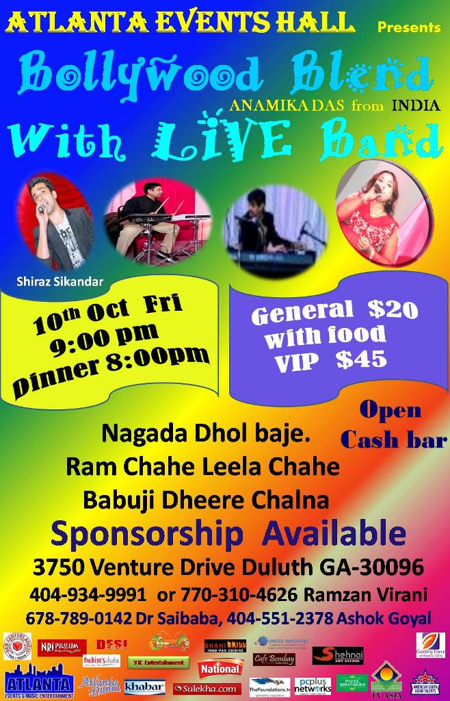 Atlanta Events Hall presents Bollywood Blend with Anamika Das from India.