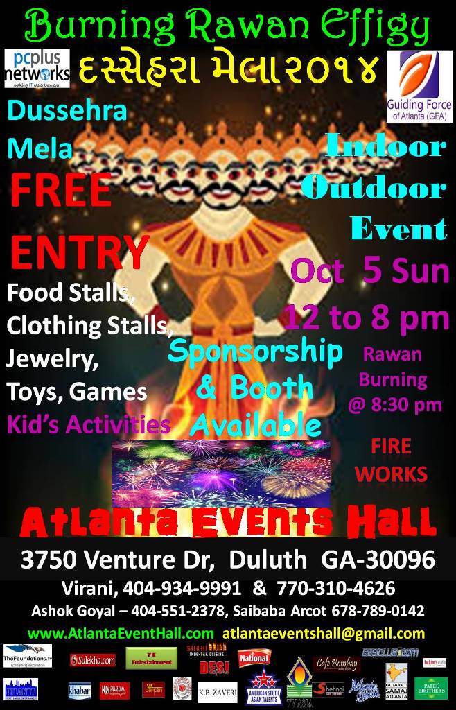 Free mela. Kids' activities, Food/Clothing/Jewelry stalls, Fireworks, Ravan burning.