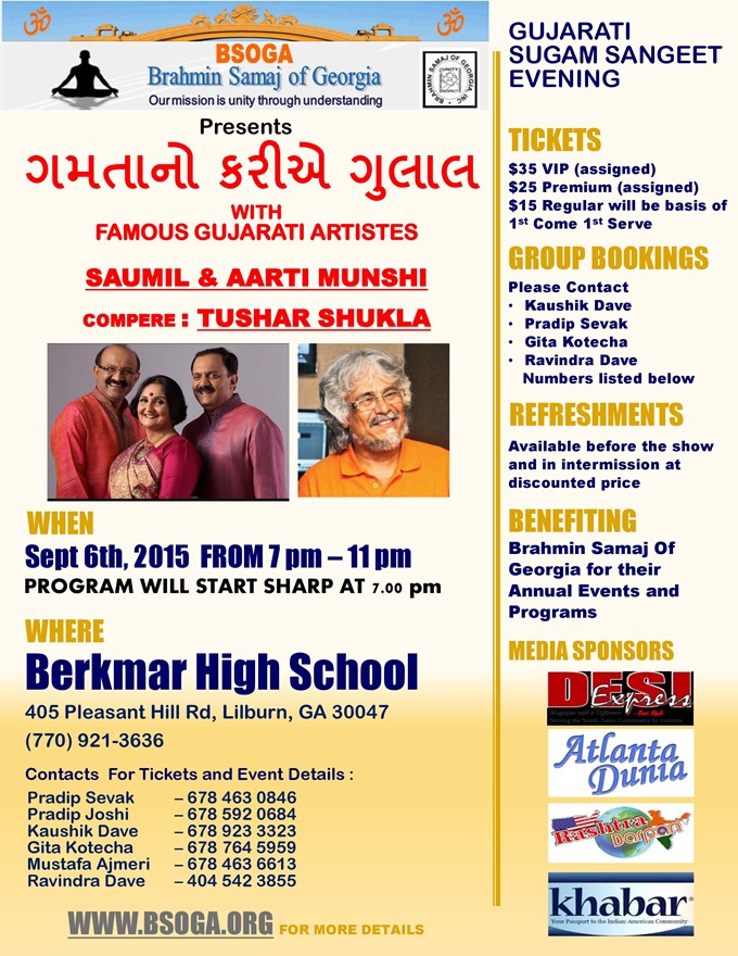 Contact: Pradip Sevak, 678-463-0846, bsoga.org