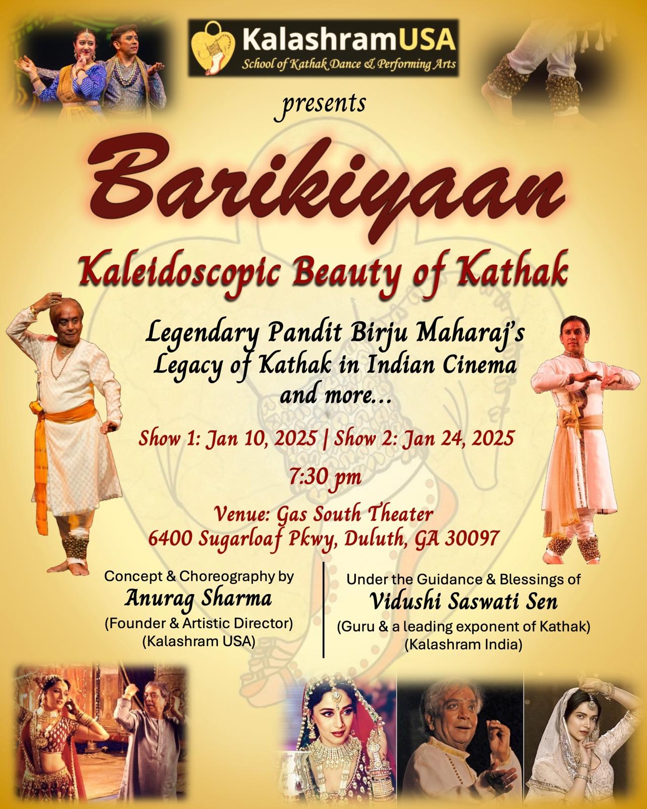 We are excited to announce KalashramUSA's debut production show: "Barikiyaan - The Kaleidoscopic Beauty of Kathak from Indian Films." We invite you to experience the magic of Kathak through this unique production, showcased on two separate Friday evenings at Gas South Theater. Tickets are now available: