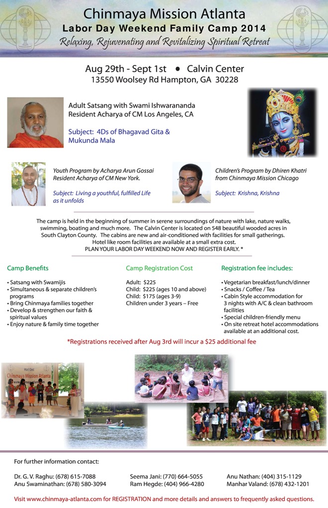 Contact: Dr. G.V. Raghu, 678-615-7088, chinmaya-atlanta.com