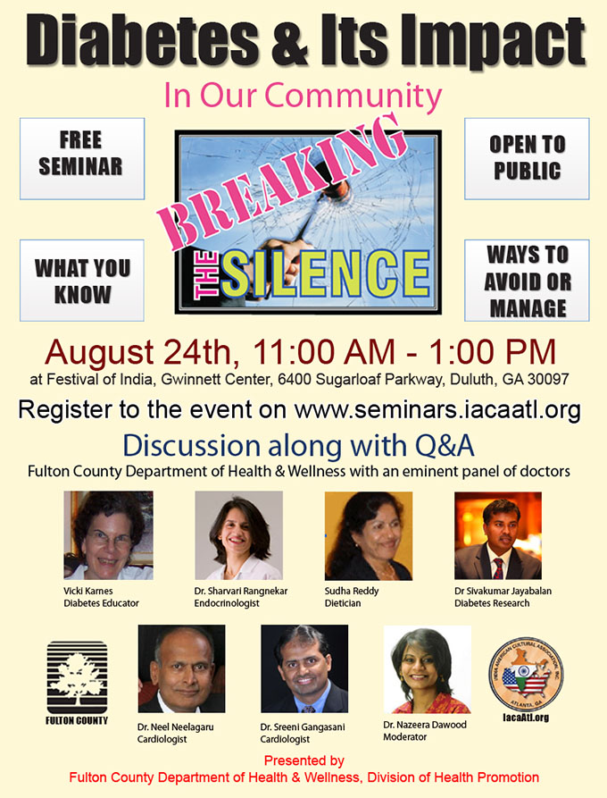 Diabetes Seminar at festival of India, Saturday, August 24th