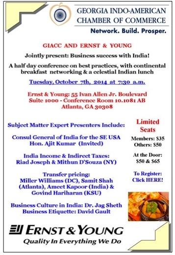 Topics include: Transfer Pricing, Income Tax, Business Atmosphere in India, New & Favorable Business Policies, Business Etiquette and more. Culminate with a celestial Indian lunch!