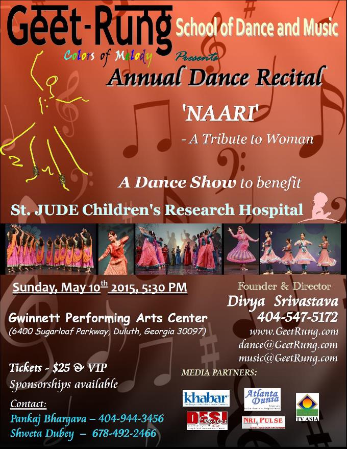 Contact: Pankaj Bhargava 404-944-3456, GeetRung.com, dance@geetrung.com, Divya Srivastava 678-765-6706, 404-547-5172