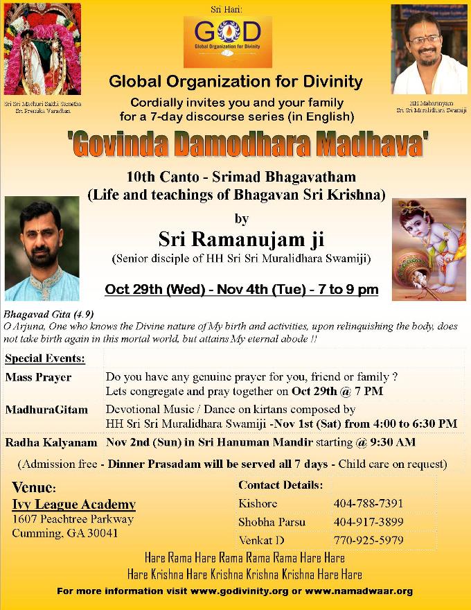 Govinda Damodhara Madhava: Srimad Bhagavatham Discourse.