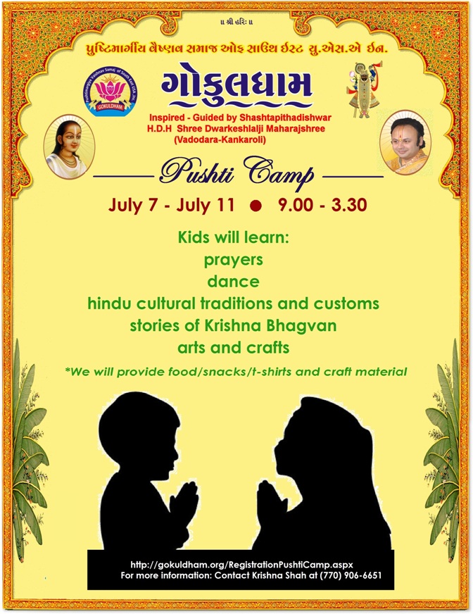 Register at http://gokuldham.org/RegistrationPushtiCamp.aspx