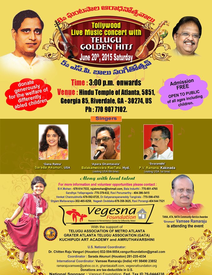Hindu Temple of Atlanta hostsTollywood Music benefit concert