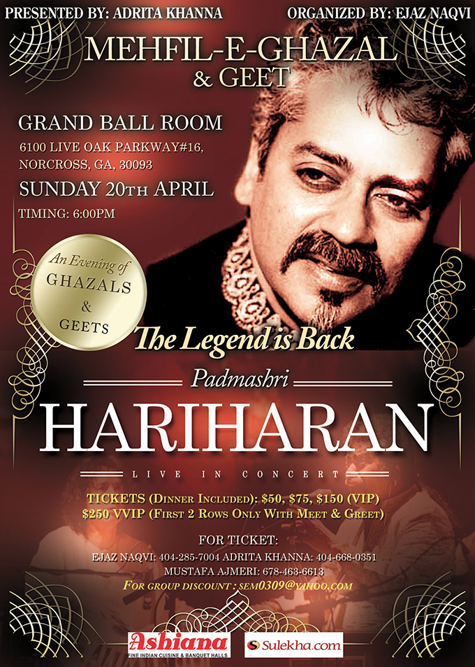 Hariharan Live in Concert in Atlanta - Mehfil-e-Ghazal & Geet