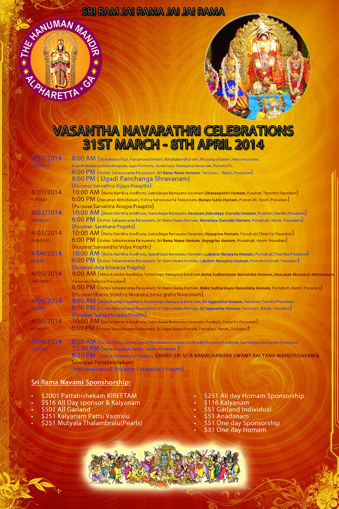 Venue: Hanuman Mandir, 390 Cumming Street, Ste B, Alpharetta, GA 30004