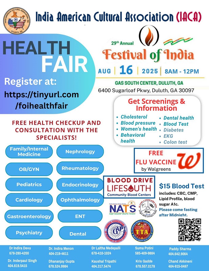 Pre-Register for Health fair at - https://desiconnectevents.com/.../iaca-festival-of-india...