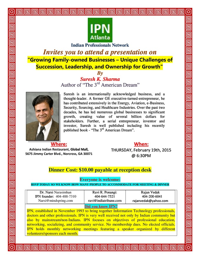 Venue: Ashiana Restaurant & Banquet Hall, Global Mall, 5675 Jimmy Carter Blvd., Norcross, GA 30071.