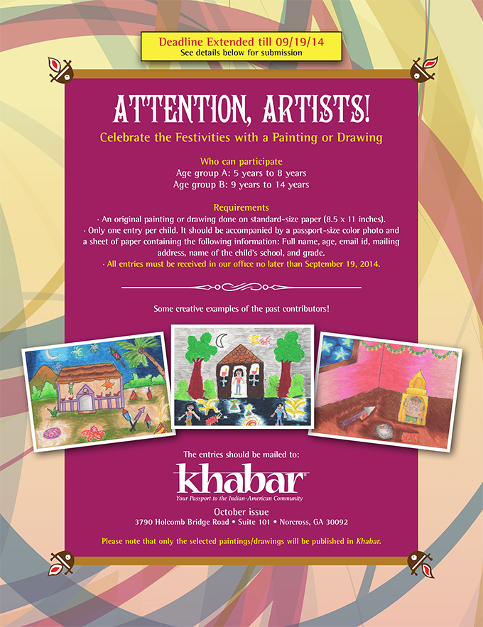Kids ages 5 to 14 years, send/bring in your original artwork no later than 9/19/14.