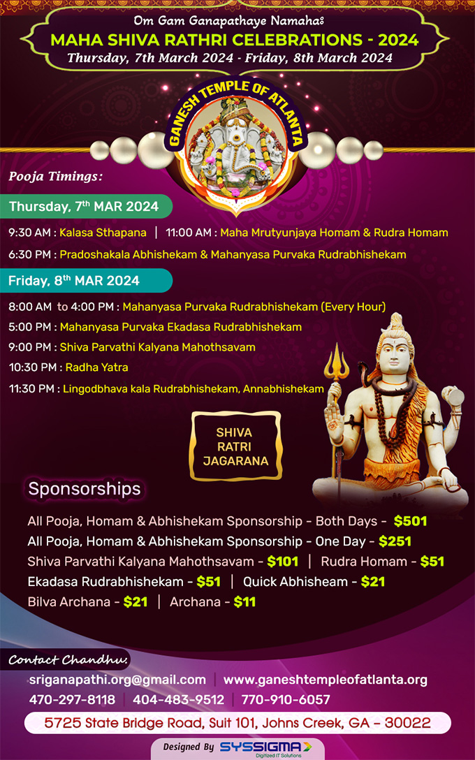 Maha Shiva Rathri Celebrations at Ganesh Temple of Atlanta
