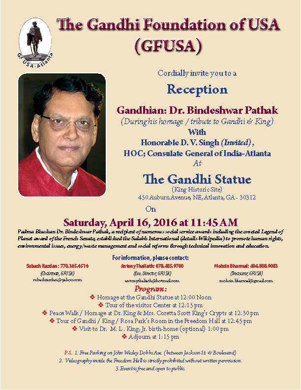 Venue: Gandhi statue, 450 Auburn Ave NE, Atlanta, GA 30312