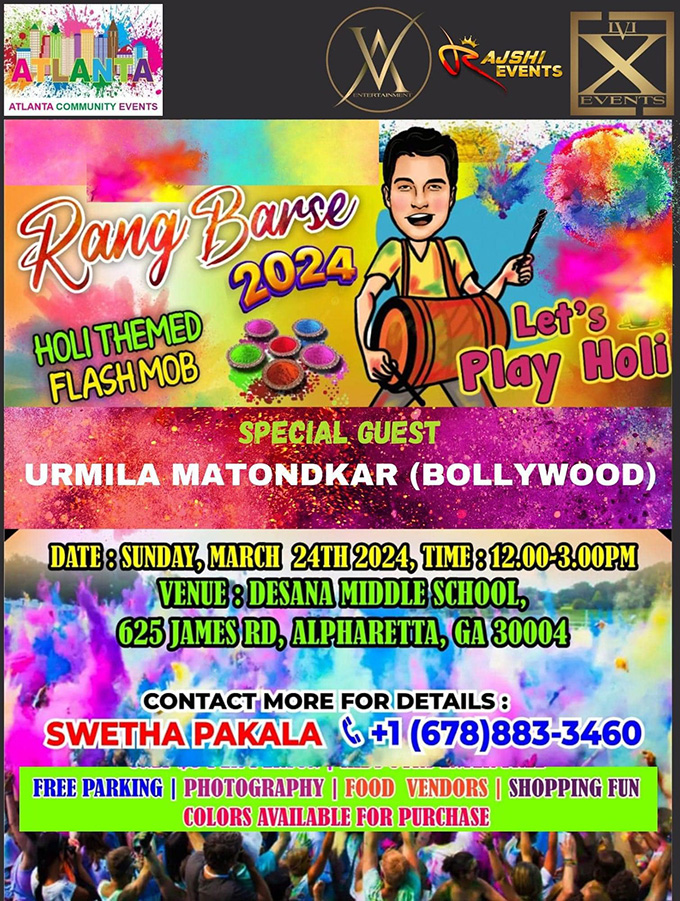***** COLOR CARNIVAL "HOLI Rang Barse 2024, Atlanta, Holi with BOLLYWOOD TOP ACTRESS "URVASHI RAUTELA" *******