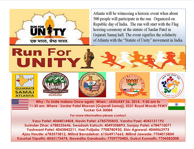 Atlanta will be witnessing a historic event when about 500 people will participate in the run. Organized on Republic Day of India.