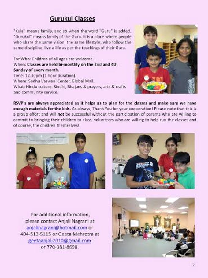 Contact: Geeta Mehrotra 404-840-6662 , sadhuvaswanicentre@gmail.com , www.sadhuvaswani.org,