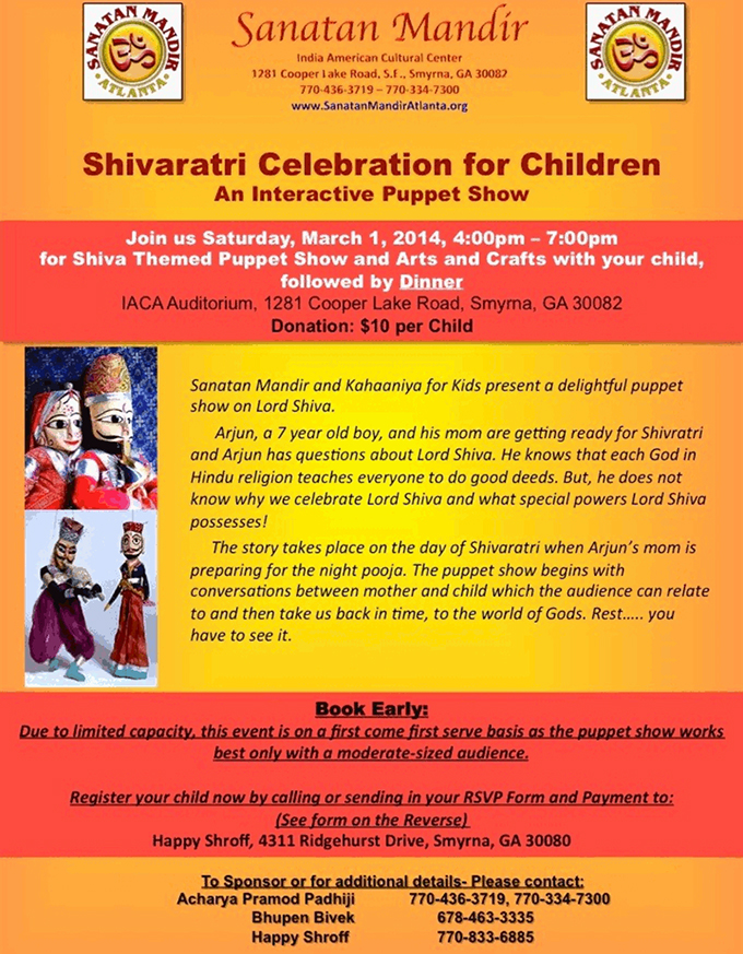 Sanatan Mandir presents Shivaratri celebration for children - An interactive puppet show