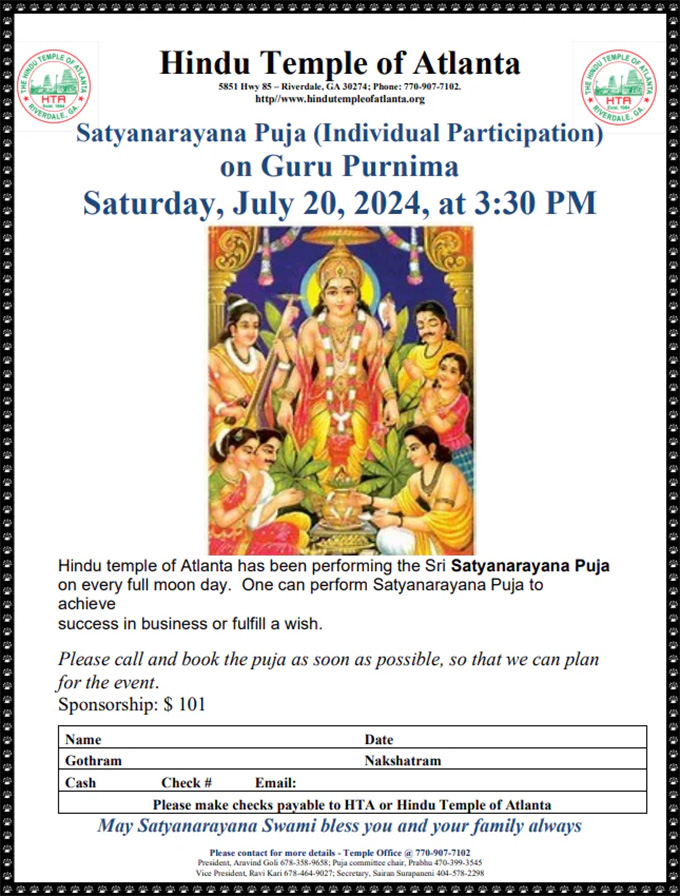 Satyanarayana Puja on Guru Purnima