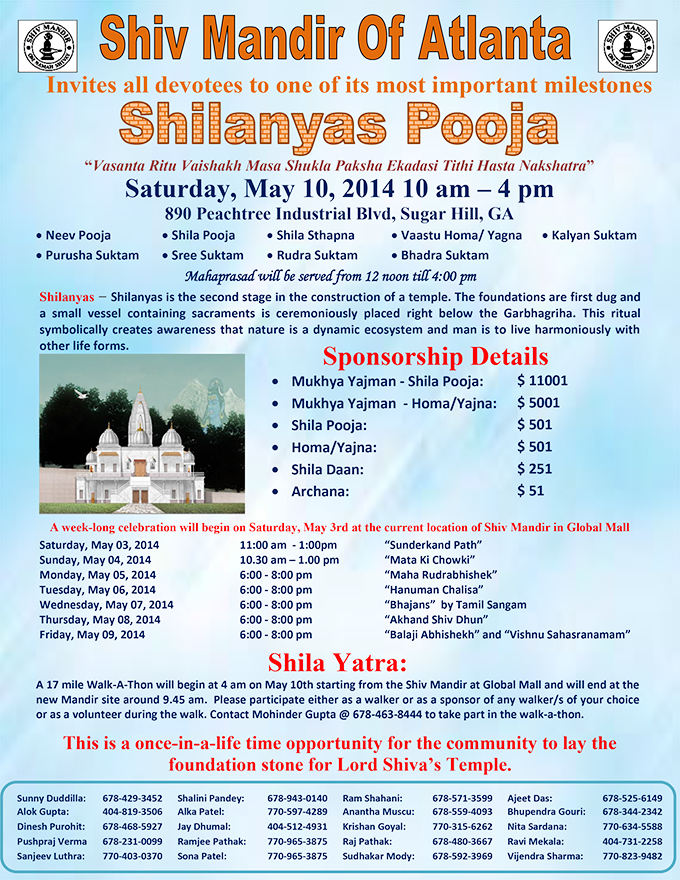 Shiv Mandir Of Atlanta - Shilanyas Pooja