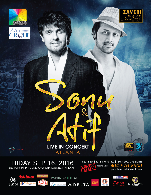 Tickets: $64+, https://www.tickethungama.com/event/2714/sonu-nigam-and-atif-aslam-live-in-concert-atlanta, http://www.parachaentertainment.com/