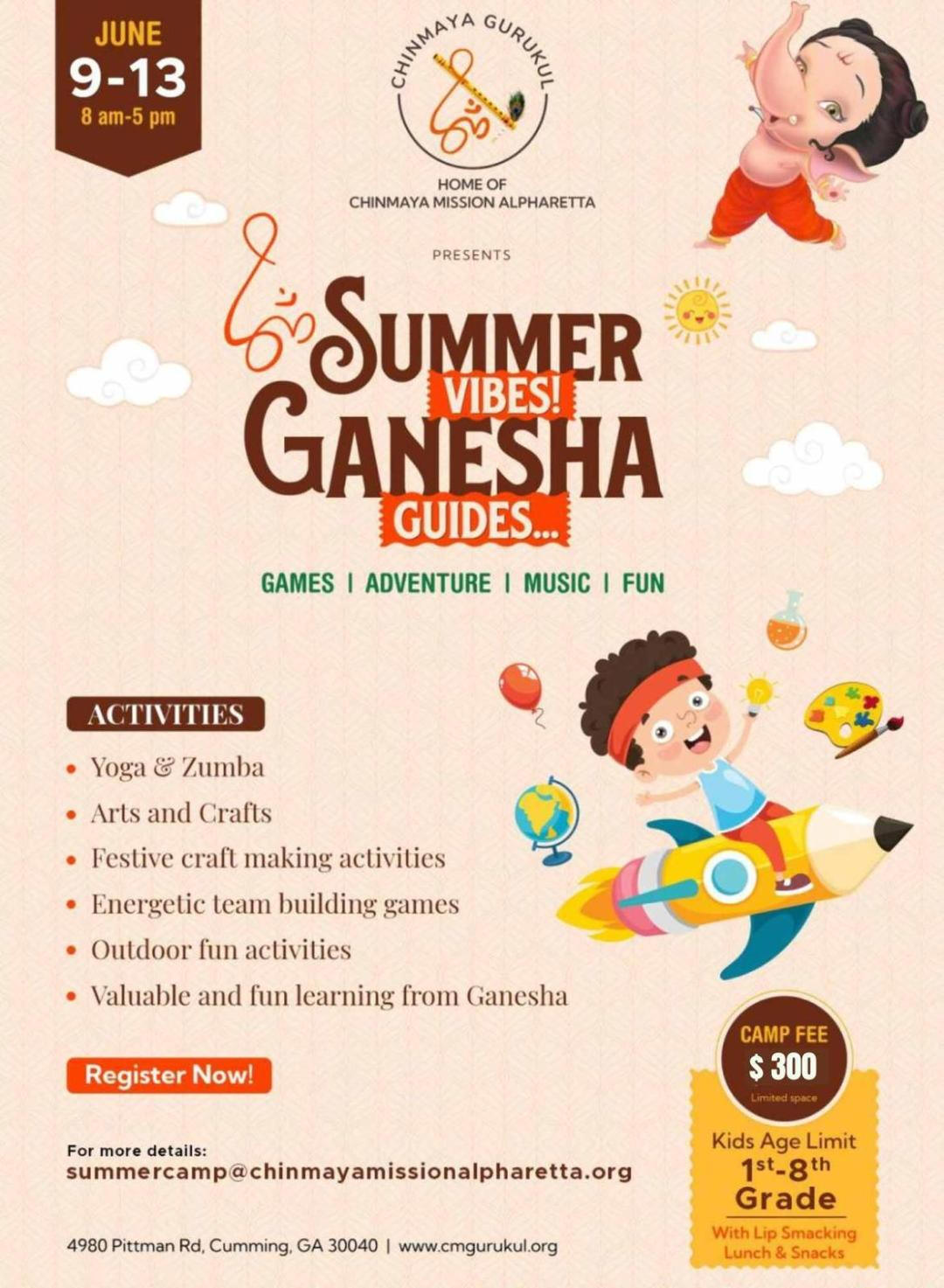 Chinmaya Mission Alpharetta is excited to announce a *Summer Camp* for kids, scheduled from *June 9th to 13th, 2025. This camp is open to children from **1st grade to 8th grade*.