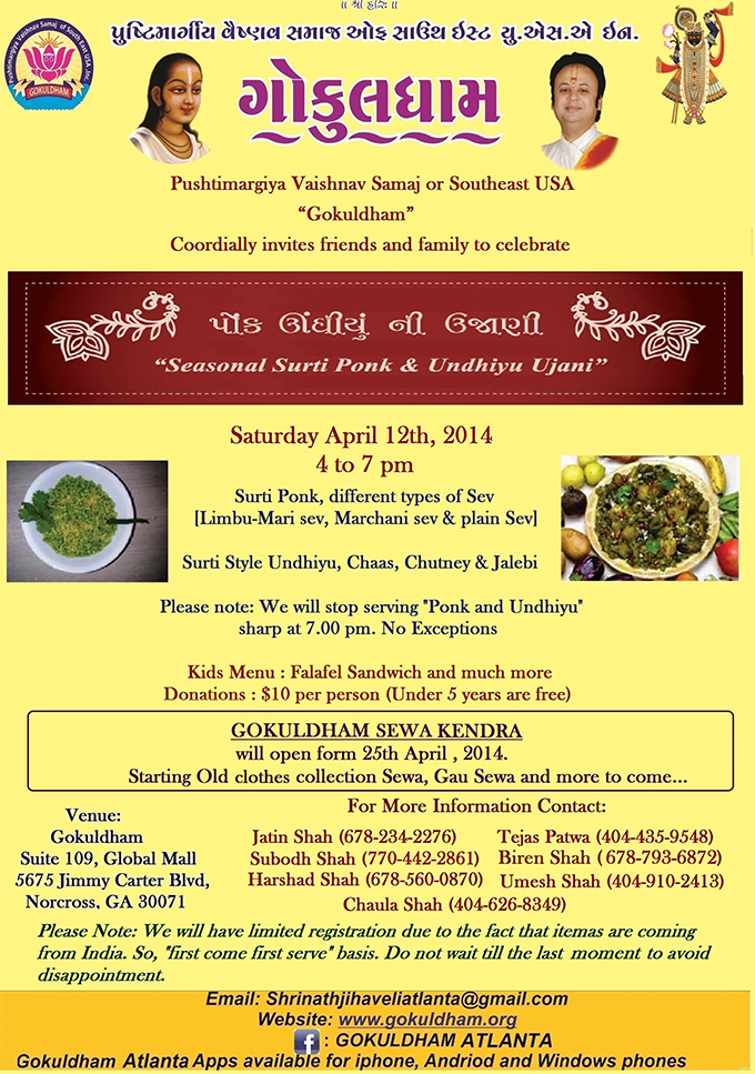 Surti Ponk and Undhiyu Ujani at Pushtimargiya Vaishnav Samaj of Southeast USA