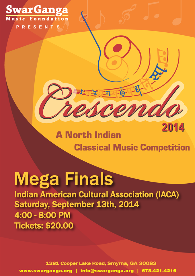 Contact: 678-421-4216, info@swarganga, https://www.swarganga.org/crescendo/2014/index.php