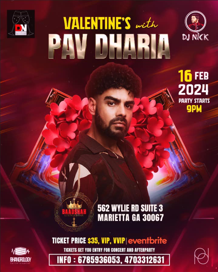 Atlanta get ready to spend Valentines with Pav Dharia on Friday February 16. Party starts at 9p Tickets now available on Eventbrite. Tickets will get you entry for concert and afterparty.