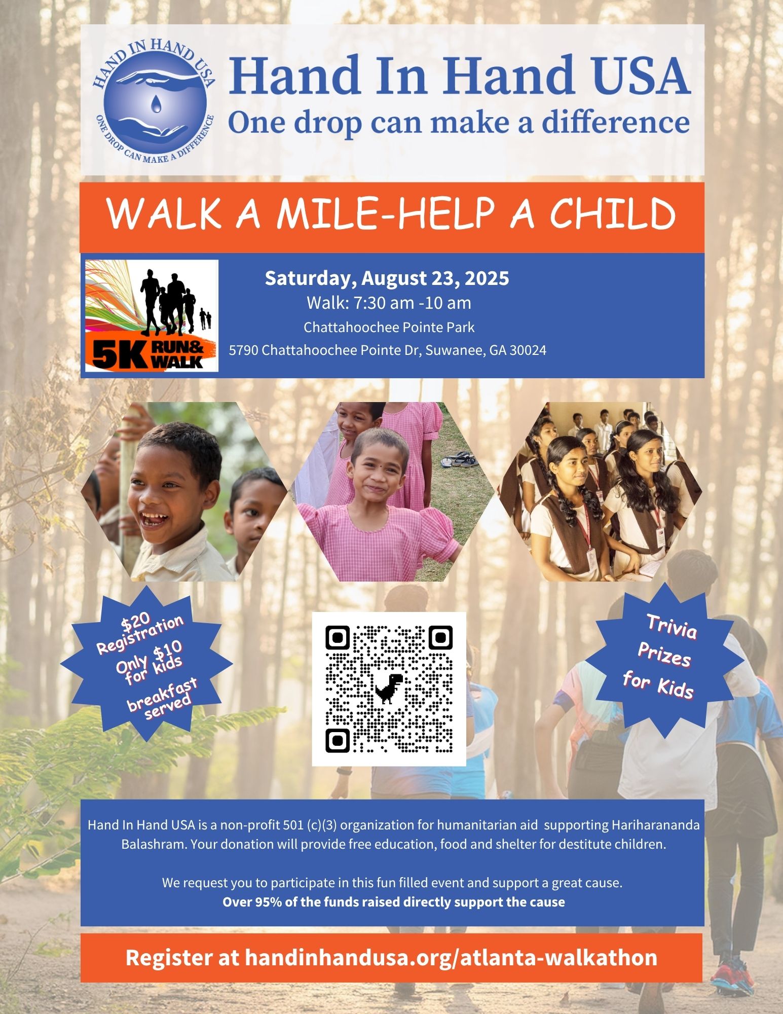 Hand In Hand USA Atlanta Chapter encourages everyone to participate in the annual Walkathon event: “Walk A Mile – Help A Child”.