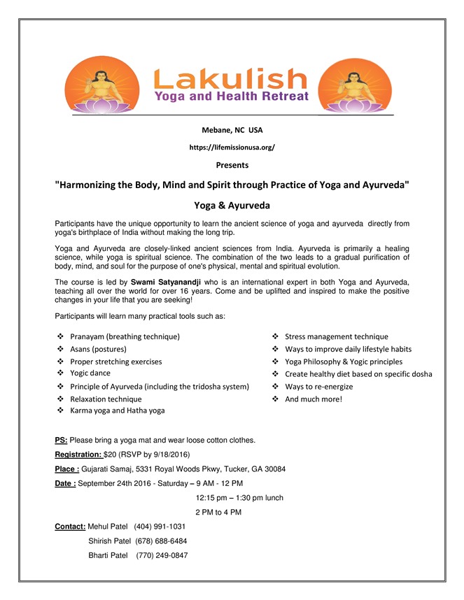 Lakulish Yoga and Health Retreat presents