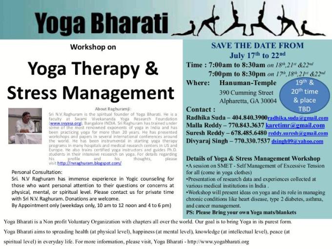 Yoga Therapy & Stress Management Workshop - Hanuman Temple - with Sri N.V. Raghuram of Bangalore (YogaBharati.org)