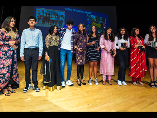 The Seeds of Change Award was presented to Raksha Youth and Parents—Adya and Ruchika Srinivasan, Tara and Kavita Purushothaman, Krisha and Reshma Patel, Dhruv and Sheetal Patel, Vikram and Sonali Bora, Jaiveer Bagga, Anika Srinivasan, and Rishika Chaturvedi. The award highlighted how the Raksha Youth board and their parents have paved the way for speaking up and sharing their voices.