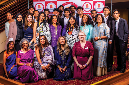 As guests sipped the crowd-favorite rose-flavored lemonade and enjoyed a boxed dinner, Bhattacharyya, along with Raksha’s Advocacy Services Manager, Anjali Guntur, mingled with guests. Both were dressed alike in saris by designer Pooja Murthy. The bold print outlined with positive words/encouraging phrases brought “the message about the journey from silence and secrets to finding our voice into full-scale visual display without unneeded noise,” Bhattacharyya said. Guests showed their admiration and gratitude for Raksha’s long-standing good work by raising $150,000 to continue helping South Asian victims of domestic violence.