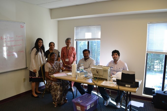 Peripheral Bone Mineral Density screening tests were in big demand. More than 35 bone density tests were performed by a team of Madhu Reddy, Kishan Bhagwandas, Vasantha Bhandari, and student volunteer Spoorthi Nuthakki, under supervision of Dr. Sujatha Reddy. About 50% were abnormal. These bone density tests helped the participants become aware of osteopenia and osteoporosis.