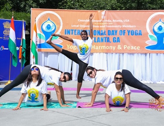 Over a thousand yoga-lovers from diverse communities in Atlanta and representatives from 50 plus community organizations came together at the Heritage Park, Sandy Springs, on Sunday morning, June 23, 2019, to participate in the 5th International Day of Yoga (IDY, with an appropriate theme: Climate Action), organized by the Consulate General of India in Atlanta and the Indian Council for Cultural Relations.