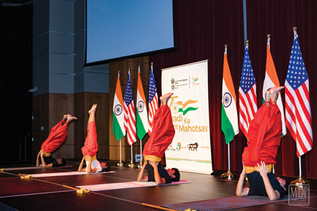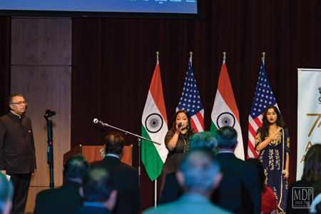 Consul Madan Kumar Ghildiyal was the evening’s Master of Ceremonies. The evening started with all rising to join in the singing of the Indian and American national anthems.