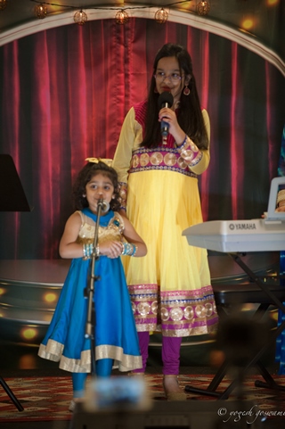 A welcome table adorned by Lord Ganesha and flanked by musically themed statues and fresh flowers at the entrance set the mood for an evening of music, fun, and camaraderie. Students ranging in age from 3 to 60 plus years and heights from 3 to 6 plus feet confidently belted out songs of their choice on an elegantly decorated stage, conceived by founder Purnima Mathur, with ardent support from her family and families of students, friends, and well-wishers.