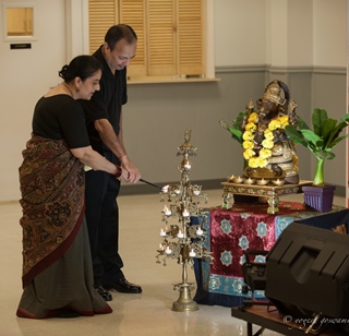 Lighting of the lamp by Navin Tyagi and Prabha Tyagi. (Photo: Yogesh Goswami)