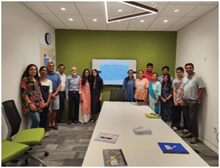 In the second photo, from left to right above are: Ritu Jain, Arunn Ahuja (Intern’s father), Arnav Jain, Bhavya Jain in front (intern), Intern Simran Ahuja sister, Agamya Jain, Professor Shailendra Palvia, Swasti Jain, Kavya Jain, Dr. Amod Sureka, Shrey Jain (Intern), Amod’s father-in-law Mr. Shrinarayan Chandak visiting from Illinois, and Jainik Panchamiya.