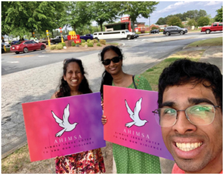 AHIMSA-End Gun Violence was created as a WhatsApp group on April 18, 2023 by three co-founders -- Dr. Amod Sureka, Dr. Shailendra Palvia and Ms. Vaisheshi Jalajam. The inspiration for this absolutely arose from the almost non-stop gun violence carnage in America. It was decided to grow this group organically by participating in activities related to curbing the madness of gun violence. Dr. Shailendra Palvia, Professor Emeritus, Long Island University, New York and President of this organization had been terribly disturbed about the gun violence epidemic for a long time. Essentially, he became an activist starting March 22, 2023 when he made a presentation over Zoom to the students and faculty of Georgia College and State University on the topic – Mahavir, Mahatma and MLK: How to Combat the Epidemic of Gun Violence with Ahimsa. This group, now a registered non-profit domestic organization, is commit