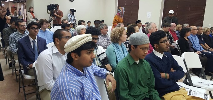 A Q&A period drew questions and comments. A descendant of Holocaust survivors stated that “This is how genocide begins—you can’t single out a community because of a few. This is what ISIS wants: prejudice and hatred. The path to peace is we need to embrace one another.” The Ahmadiyya community was thanked for engaging with the mainstream and inviting people to come and understand better. Finally, guests were asked to consider the central, but too-often-ignored message of Islam that is the protection of freedom of conscience, declaring, “There should be no compulsion in matters of faith” (Qur’an 2:257), an exhortation diametrically opposite to any act of terror.