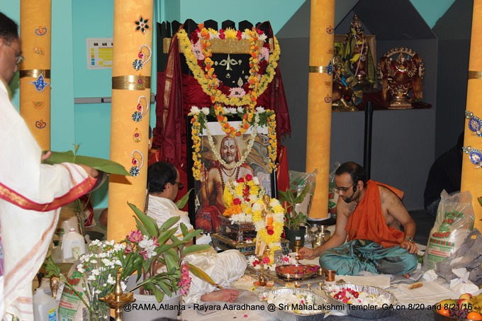 Devotees of Sri. Raghavendra Swamy had a grand celebration of 345th ‘Aradhana Mahotsava’ of Sri Raghavendra Swamiji at Sri Mahalakshmi temple in Cumming, GA. This program was organized by Ananthadi Rayara Matha (RAMA), Atlanta GA, on August 20-21, 2016. More than 500 devotees participated from Atlanta, Tampa, Tennessee, Charlotte and Greenville.